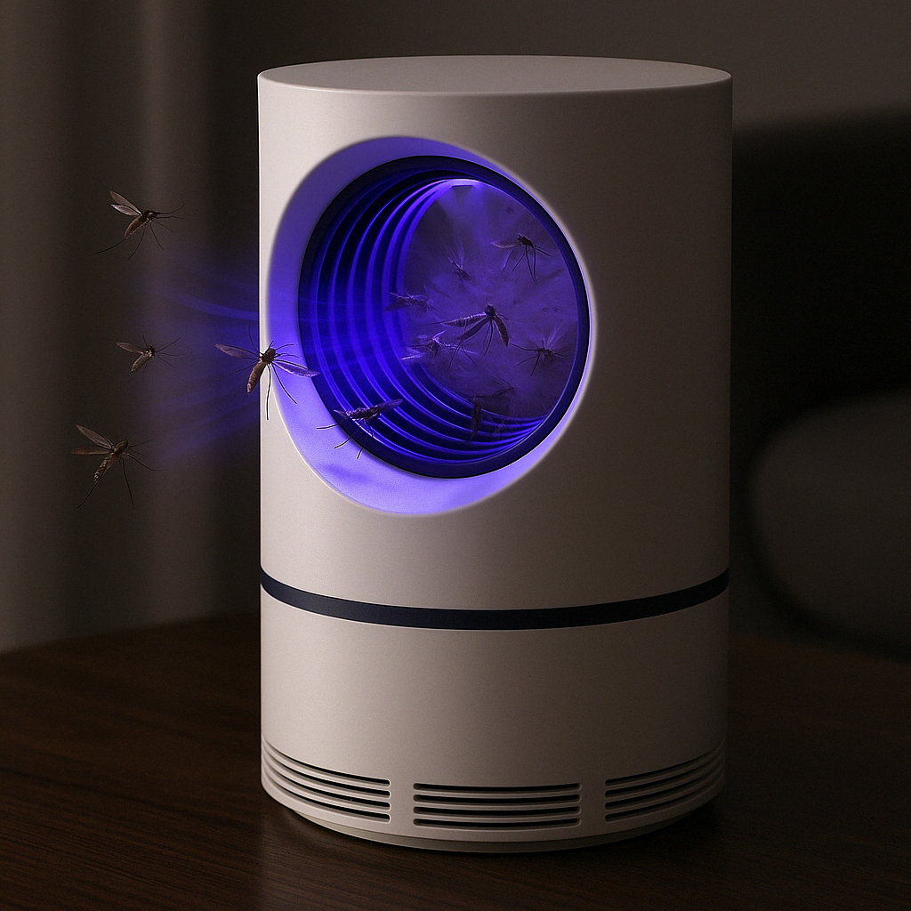 elimina mosquitos de manera segura y silenciosa, sin químicos ni ruidos molestos. Utiliza luz UV para atraerlos y un ventilador de succión para atraparlos eficazmente.